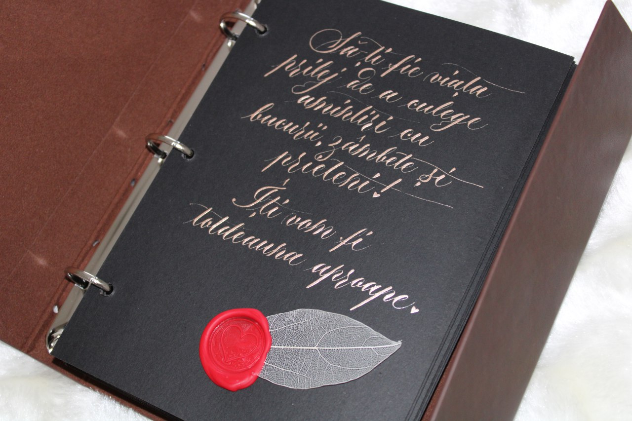 Fiecare creație caligrafică pe care o realizez cu migală și din pasiune pentru frumos, este autentică iar clienții mei apreciază această particularitate.
