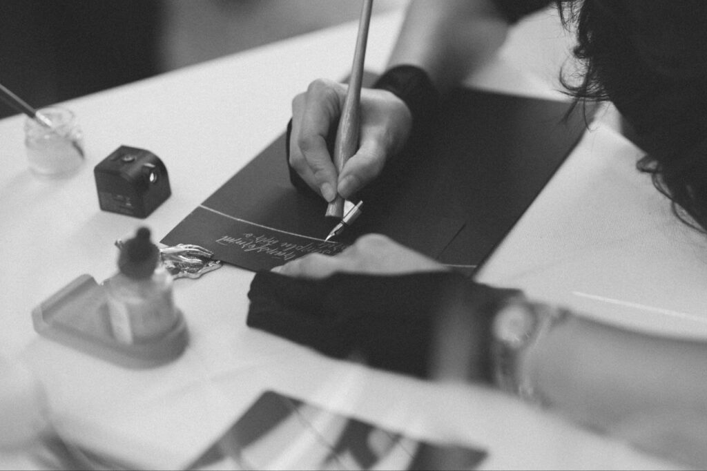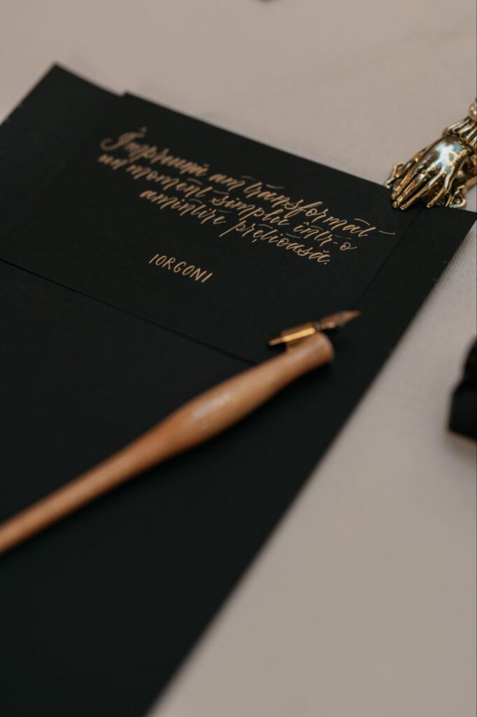 Ofer o multitudine de servicii caligrafice LIVE, precum cea în toc și peniță, marker, penson, liner, toate în cadrul evenimentului tău, fie el nuntă, botez, party corporate, lansare de produs.