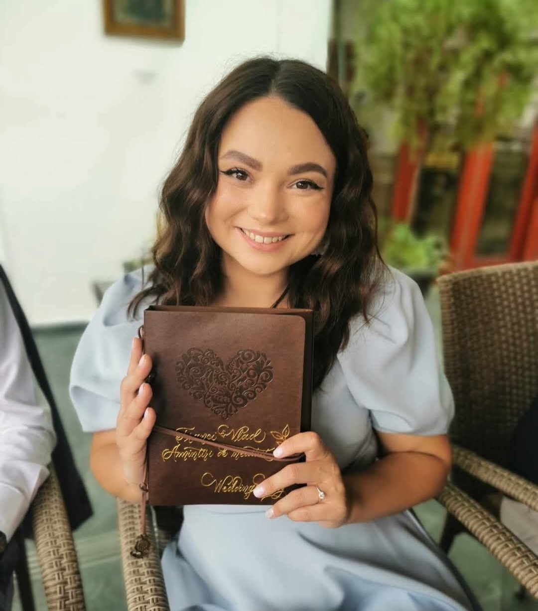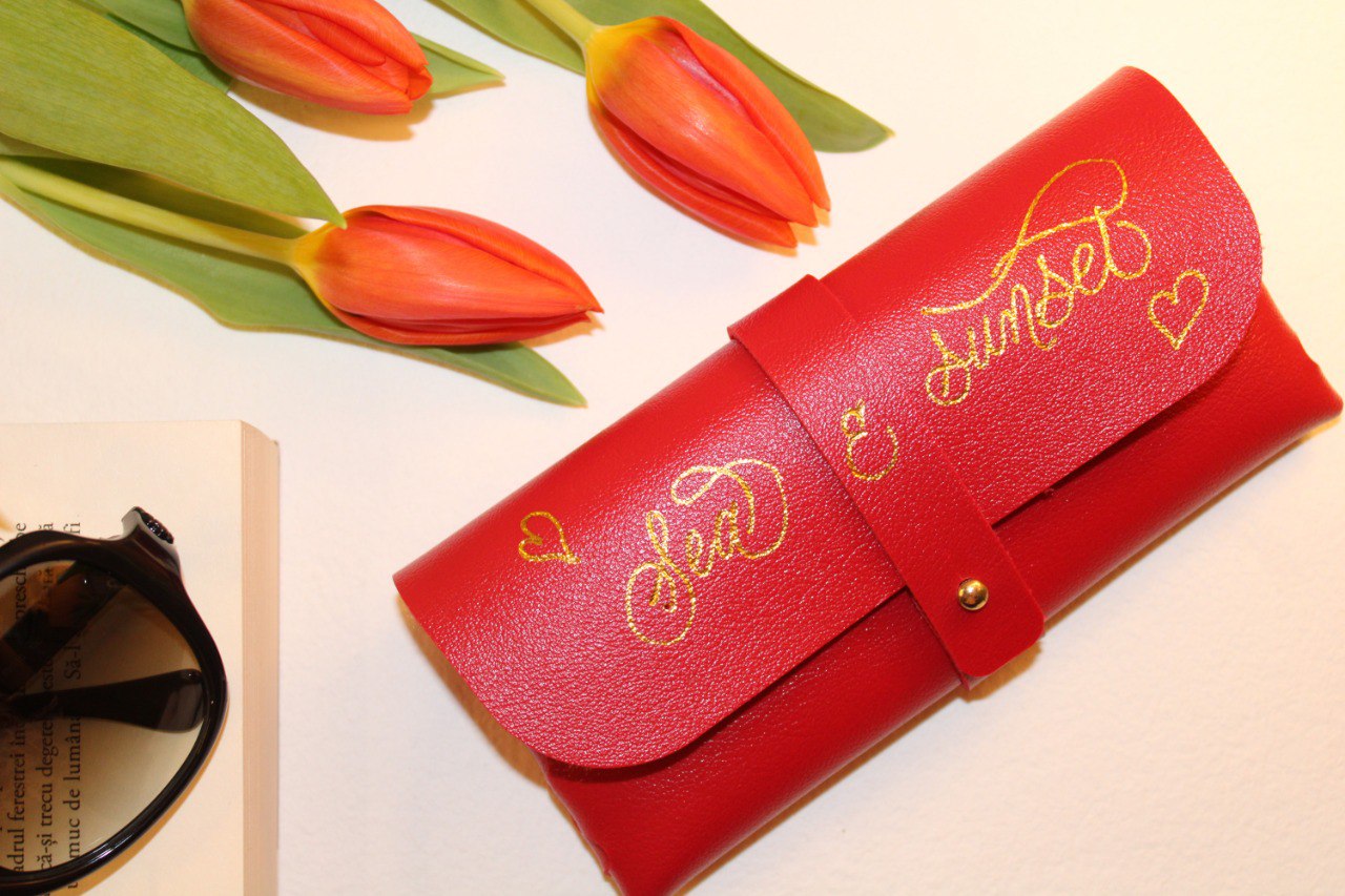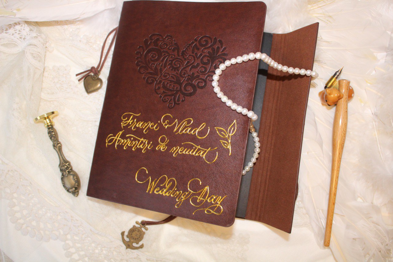De pildă: tocurile de ochelari, portofelele, albumele foto, brelocurile din piele sau orice altceva vizualizezi pentru viitorul tău eveniment și este pretabil.